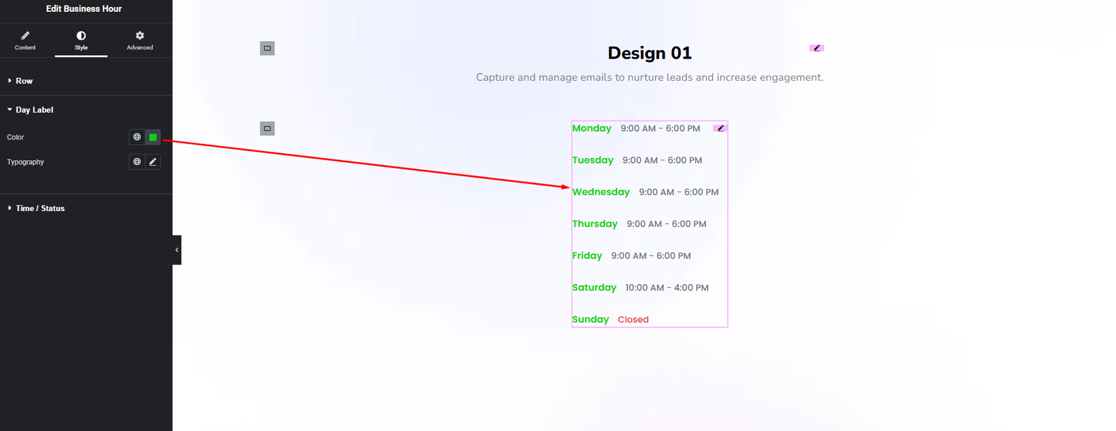 Show your business hours in a clean and customizable weekly schedule.
