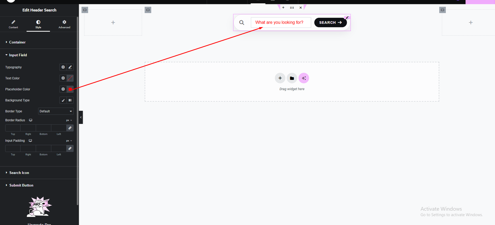 Drag and Drop the Unlock-Addons Header Search widget to the Elementor Editing Panel.
